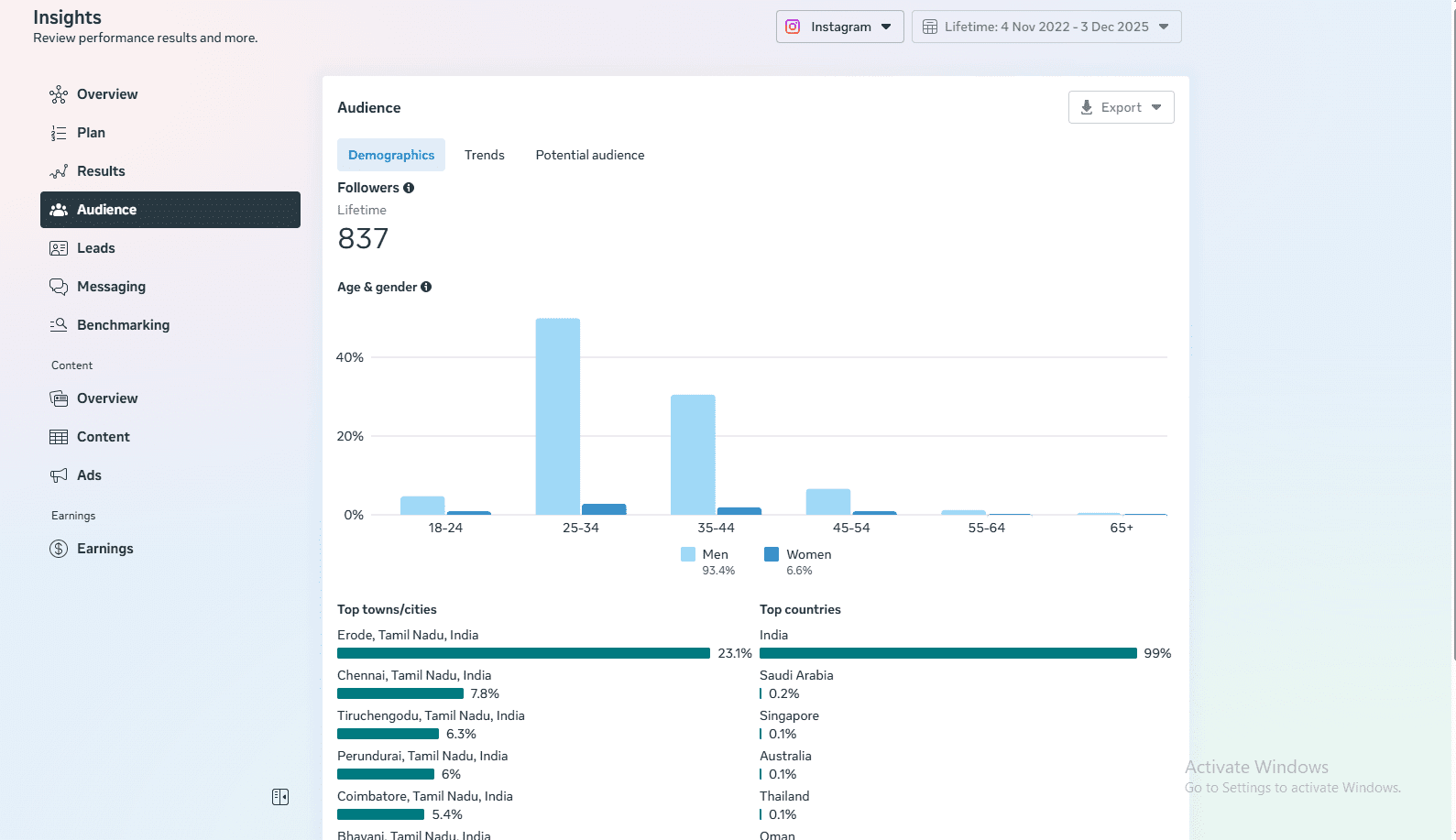 - Gender Split: 93.4% Men • 6.6% Women