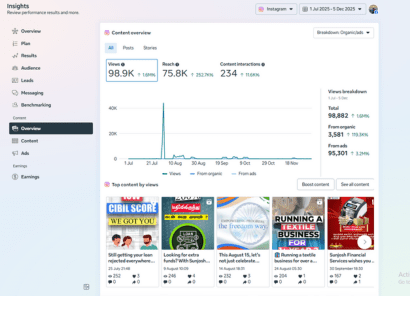 Overall, the combined strategy enhanced Sunjosh Finserv’s credibility, increased organic visibility across Instagram, Facebook, and WhatsApp, and positioned the brand as a knowledgeable, transparent, and customer-first financial service provider. This proved that a clarity-based, audience-aligned content approach can deliver measurable impact even without heavy advertising spend.